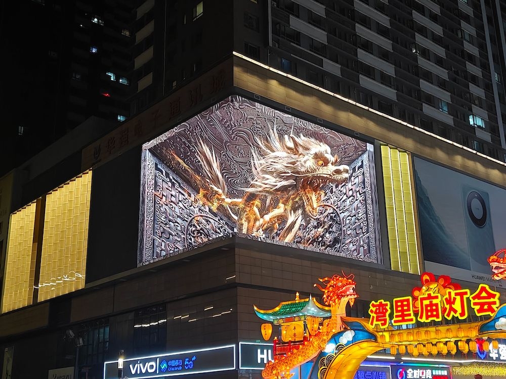 根据文化内核的定位,以LED显示屏为载体,通过裸眼3D、LED天幕、3D Mapping、AR光影互动等表现形式、利用空间维度、虚拟维度、现实维度技术,将艺术创新与数字技术相结合,提供各类沉浸式空间体验服务,打造城市新地标,增强城市魅力,真正做到“建筑可阅读、街道可漫游、历史可穿越”。