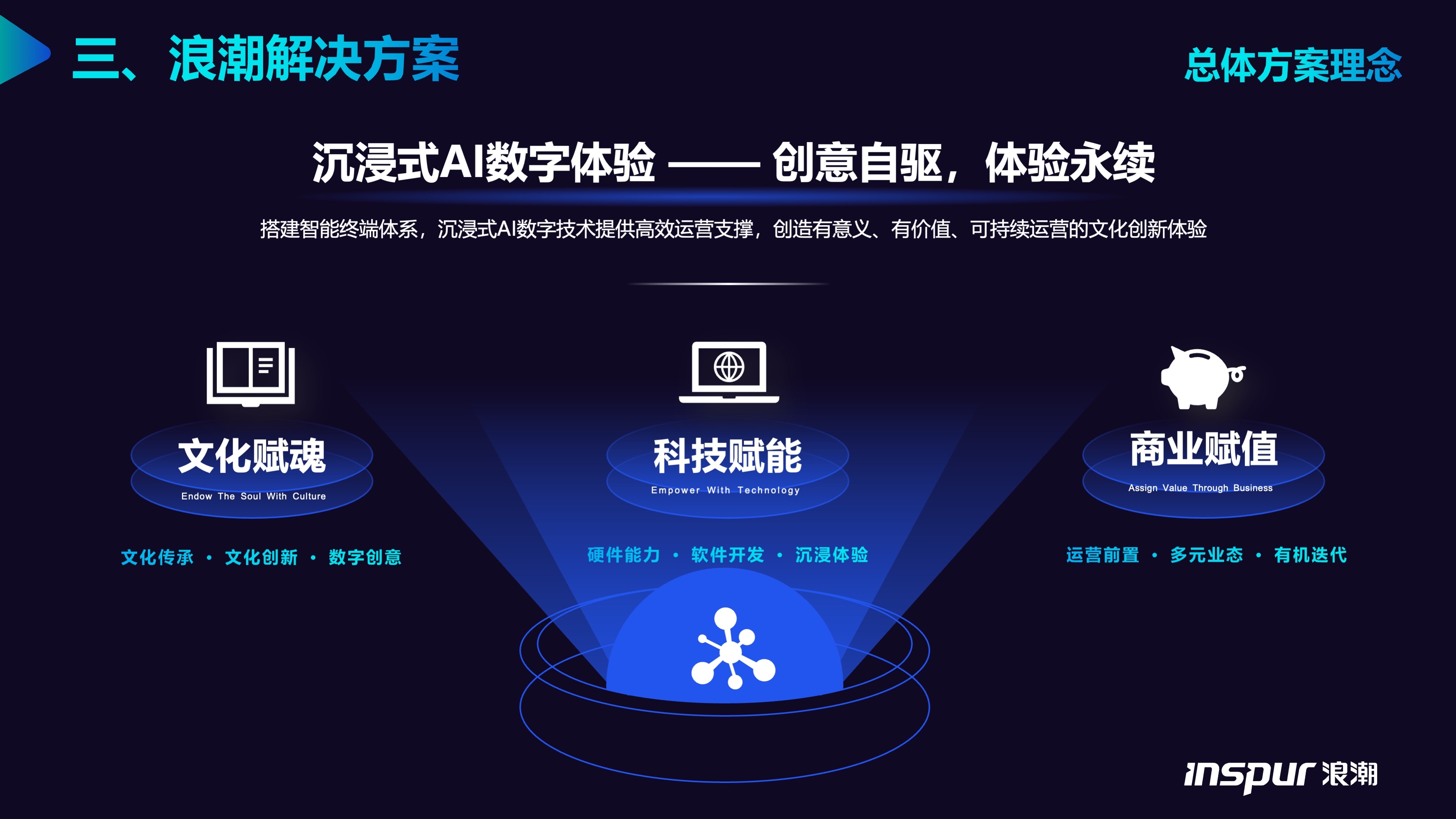 搭建智能终端体系,沉浸式AI数字技术提供高效运营支撑,创造有意义、有价值、可持续运营的文化创新体验。