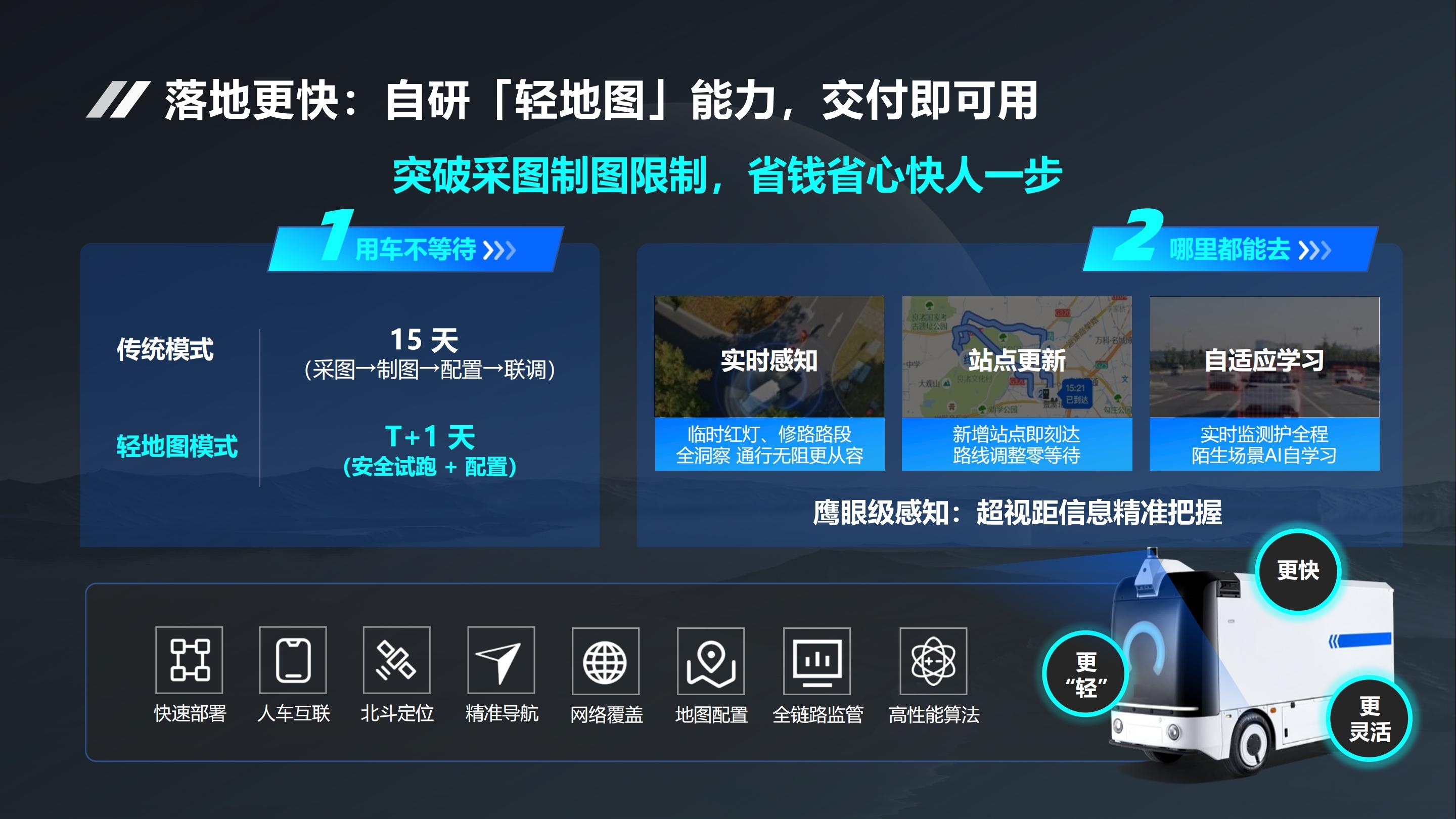 浪潮无人配送机器人基于浪潮自研的自动驾驶模块、配合仿真及高精地图运营基础平台,实现365*24h自动驾驶配送,可有效替代人工驾驶配送,为终端用户降本增效。